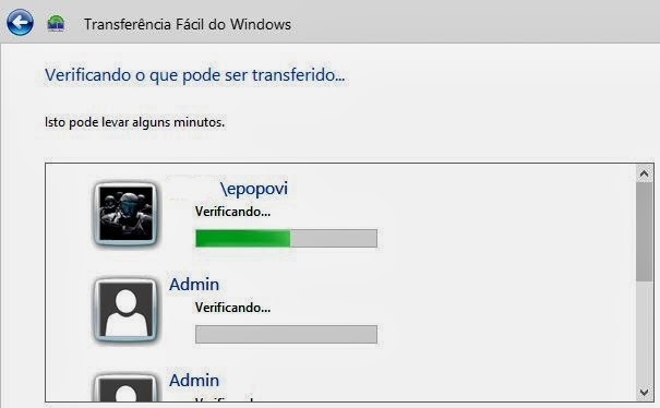 6) Agora aguarde até que o Windows identifique e gere o backup dos perfis de usuários da máquina. Essa parte é a mais demorada e pode levar bastante tempo, dependendo do que você tem no computador e de quantas pessoas utilizam o equipamento;