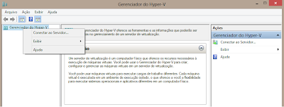 É importante lembrar que seu processador deve dar suporte a virtualização e ser de geração de 64 bits para utilizar todos os recursos da solução. Você notará que caso seu hardware não possua suporte a virtualização, o Hyper-V funciona apenas como gerenciador de um servidor virtual externo e não poderá criar as máquinas virtuais. Se a plataforma Hyper-V estiver desativada, você deve validar seu hardware.