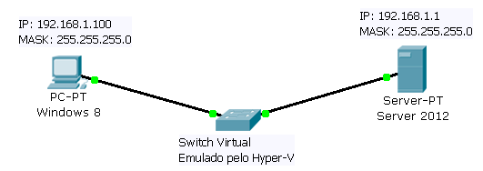 Vamos seguir um pequeno escopo básico para entender o papel do Switch virtual do Hyper-V dentro do nosso ambiente simulado.